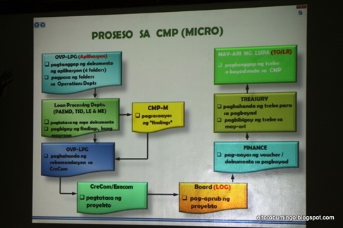 Kindly look at the following pictures which discussed the complexities of the Community Mortgage Program (CMP) and how illegal settlers could avail of this program by the government. I believe the success of this project lies mostly on the Mobilizer – the private or government office that helps the HOA to prepare the necessary papers for CMP application.